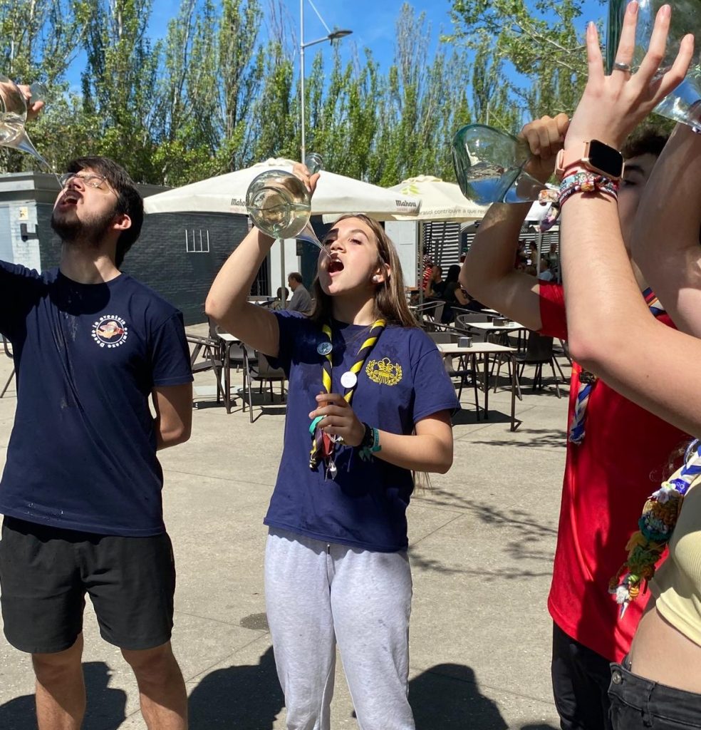 Noe Pedrosa y Rut (familiares del Grupo Scout Laguna) pusieron el toque musical. Canciones tradicionales al ritmo de sartenes, cucharas, panderos y morteros. De cuando no se tenían más instrumentos que los objetos cotidianos de la cocina. Sonidos ancestrales muy presentes en los movimientos musicales actuales de Castilla y León. Y Ovejero (Grupo Scout Arlanzón) el toque de humor, con un multitudinario concurso de porrón.